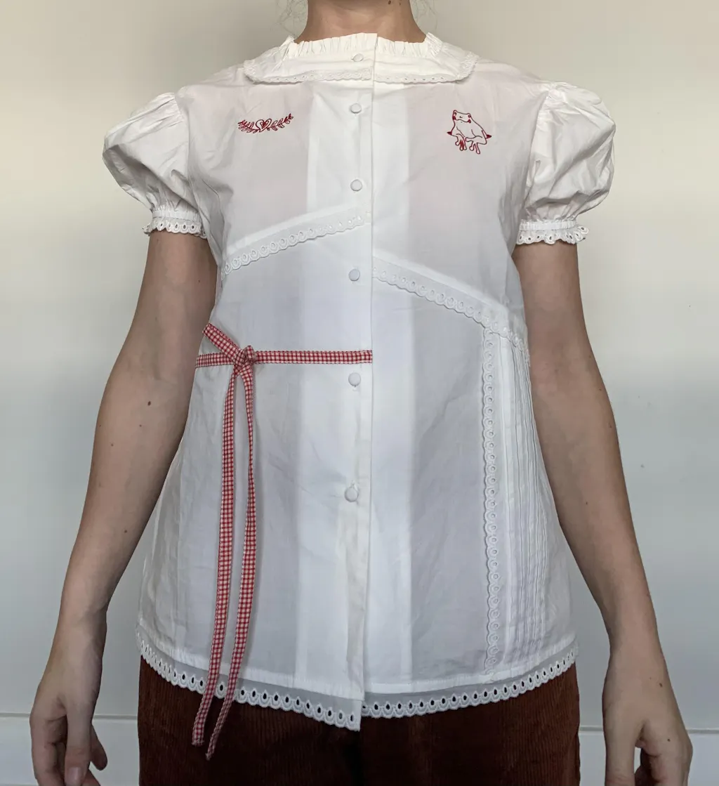 This blouse is super cute, and I love the lightweight, breathable fabric. All the details look just as gorgeous in person (although, something to note: the bow on the front is decorative only, it is sewn down and does not untie). It is a bit longer on me than I would like, and if I tuck it into to high waist pants, the bow is sort of just dangling off the bottom (I’m 5’3”, so I’m sure the effect would be different at different heights). I also find the elastic on the arms sliiightly tighter than I would prefer for comfort, but sizing up may help with that. I’m usually a small in other brands, and I usually wear a medium in this brand, but I got this blouse in a small. Despite it not meeting some of my particular fit preferences, I think this blouse pretty much delivers on exactly what it appears to, and the quality is great!